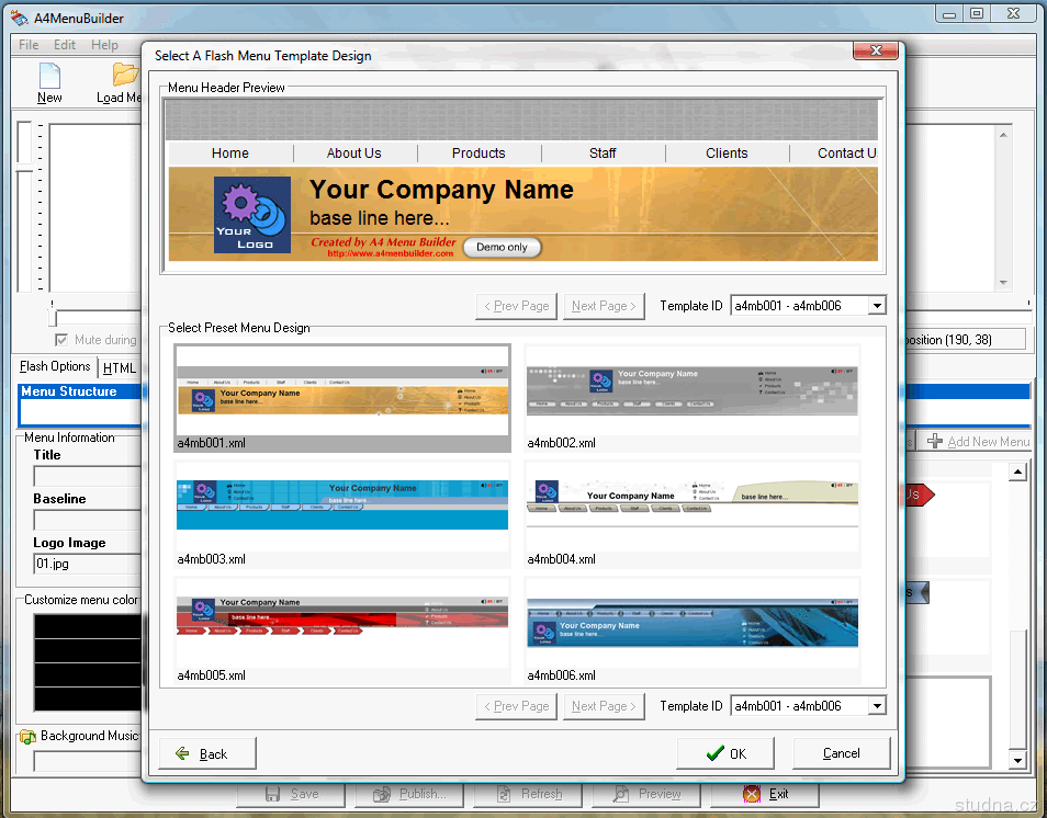 Program pre ľahkú tvorbu atraktívnych, profesionálnych Flash menu z preddefinovaných šablón.