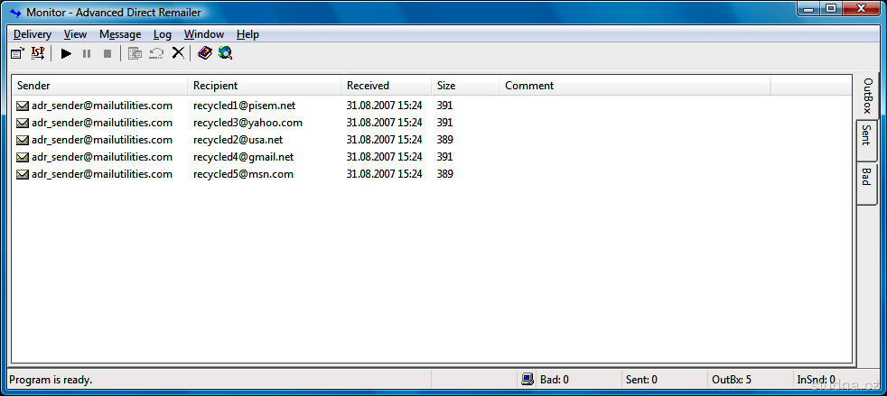 Parametre programu Advanced Direct Remailer 2.41