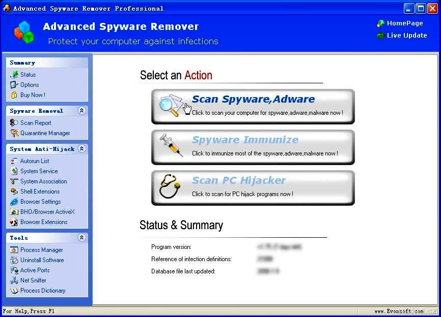 Anti-spyware, anti-virus a anti-spam softvér, ktorý rýchlo a bezpečne nájde a odstráni spyware, vírusy, trójske kone, keyloggery, cookies, dialery a súborový, trackware a malware z vášho PC.