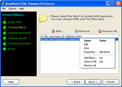Program umožňujúci ochranu webových stránok (HTML a textových súborov), šifrovaním a heslom.
