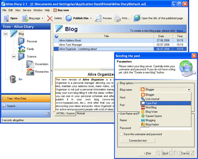 Program pre vedenie denníkov a plne vybavený blog klient.
