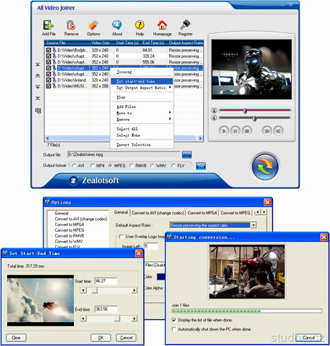 Nástroj umožňujúci spojenie viacerých AVI, DivX, MPEG, WMV alebo ASF video súborov v jeden.