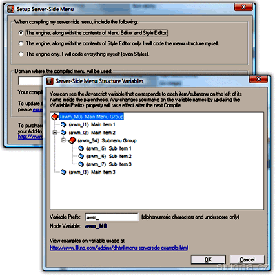 Doplnok aplikácie AllWebMenus v5 umožňujúci generovanie atraktívnych Javascript/DHTML/CSS webových menu na základe zvolených podmienok a parametrov v programe alebo dát v databáze, na strane webového servera (PHP, JSP, ColdFusion, ASP.