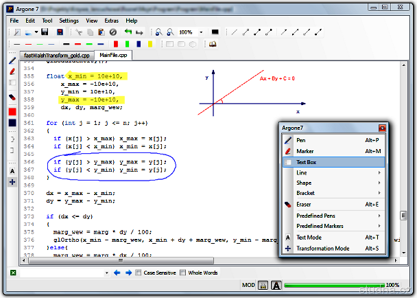 Program umožňuje ľahké dopĺňanie poznámok to textu (náčrty, texty,…).