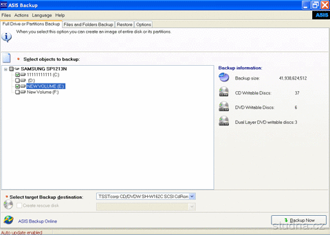 ASIS Backup dokáže vytvárať bootovacie zálohy vašich dát na CD alebo DVD disky.