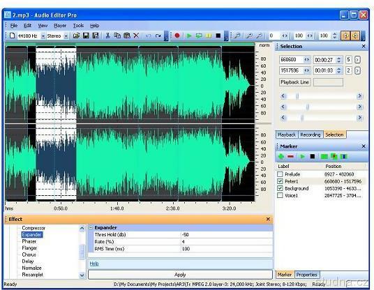 Parametre programu Audio Editor Pro 5.03