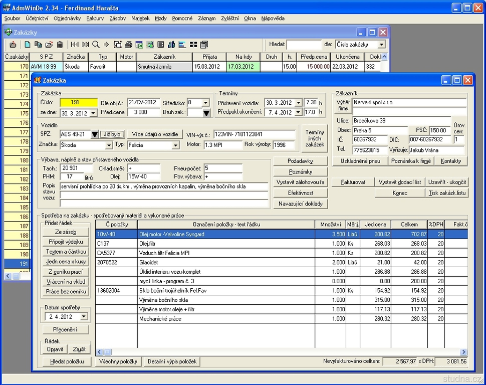 Autoservis + účtovný program AdmWinDE2.57 Startverze