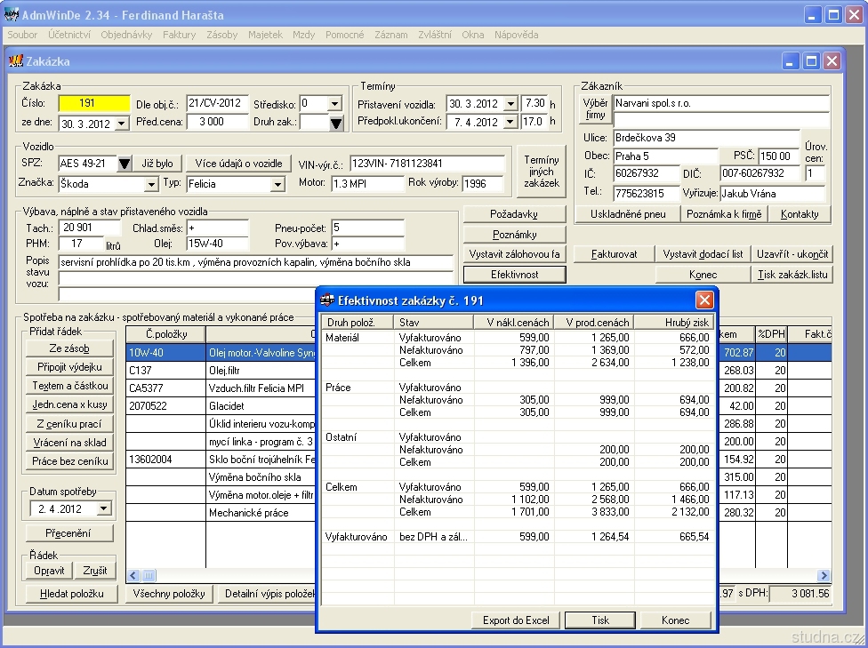 Autoservis + účtovný program AdmWinPU2.57 Startverze