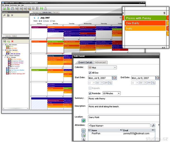 Calgoo Calendar umožňuje vytvoriť svoj vlastný kalendár a synchronizovať dáta s inými kalendármi (Google Calendar, kalendár programu Outlook, kalendáre formátu iCal).