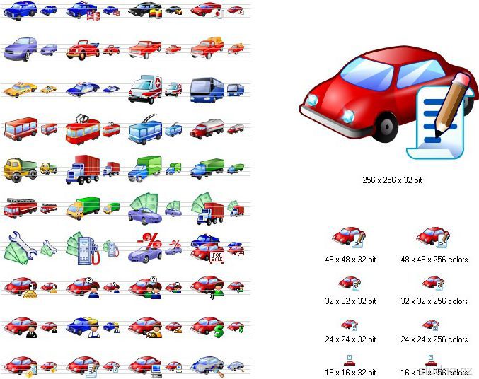 Súprava atraktívnych, moderných ikon z oblasti financií a transportu vo Windows XP a 8-bitovom farebnom formáte, v rozmeroch 16x16, 24x24, 32x32, 48x48 a 256x256.