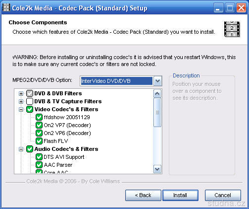 Cole2k Media (Standard) je balík kodekov na bežné použitie.
