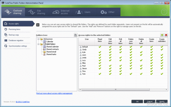 Rozširujúci modul pre Microsoft Outlook umožňujúci zdieľať kalendáre, kontakty, emaily, úlohy alebo aj dokumenty aplikácií MS Office s ostatnými užívateľmi vo firemnej alebo domácej sieti, bez Exchange Serveru.