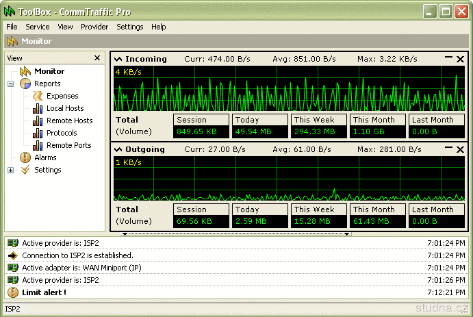 CommTraffic je sieťová utilita na monitorovanie aktivity pripojenia na Internet alebo LAN (vytáčané alebo Ethernet).