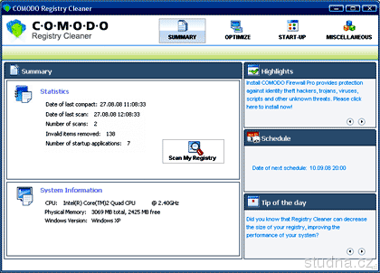 Program vykonáva hĺbkovú analýzu a optimalizáciu registra Windows.