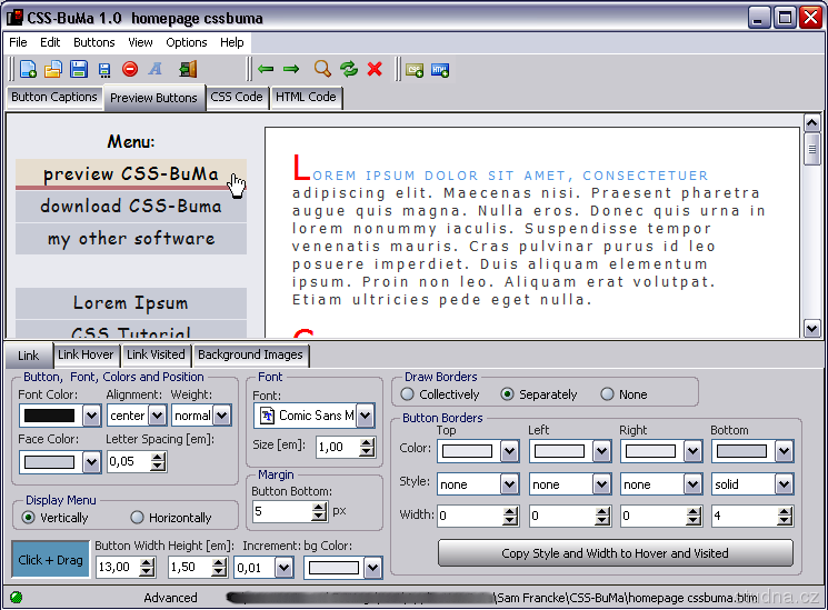 Program umožňuje tvorbu navigačných tlačidiel pre webové stránky s využitím CSS technológie, bez nutnosti písať CSS kód.