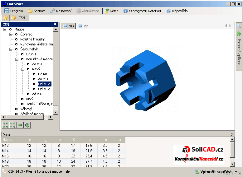 DataPart – je program, ktorý obsahuje normalizované súčasti, ako sú napríklad (podložky, matice, skrutky, závlačky, perá, nity).