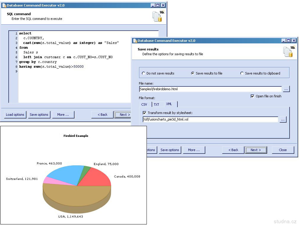 Parametre programu Database Command Executor 2.3