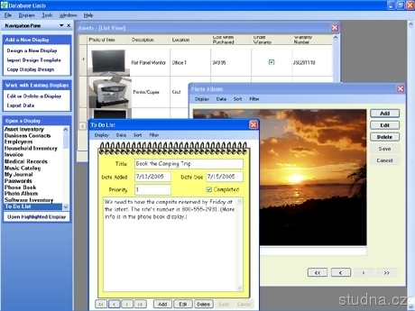 Database Oasis umožňuje ľahké vytvorenie databázy, presne podľa vašich potrieb, pre prehľadné ukladanie všetkých osobných aj firemných informácií na jednom mieste v počítači.