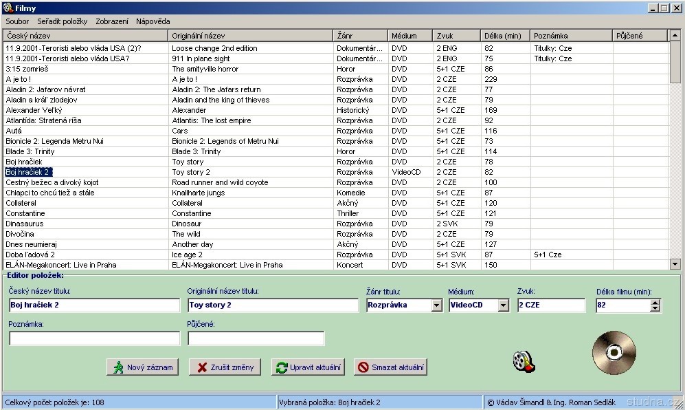 Program určený pre správu domáceho archívu filmov na DVD alebo CD diskoch, VHS páskach a pod.