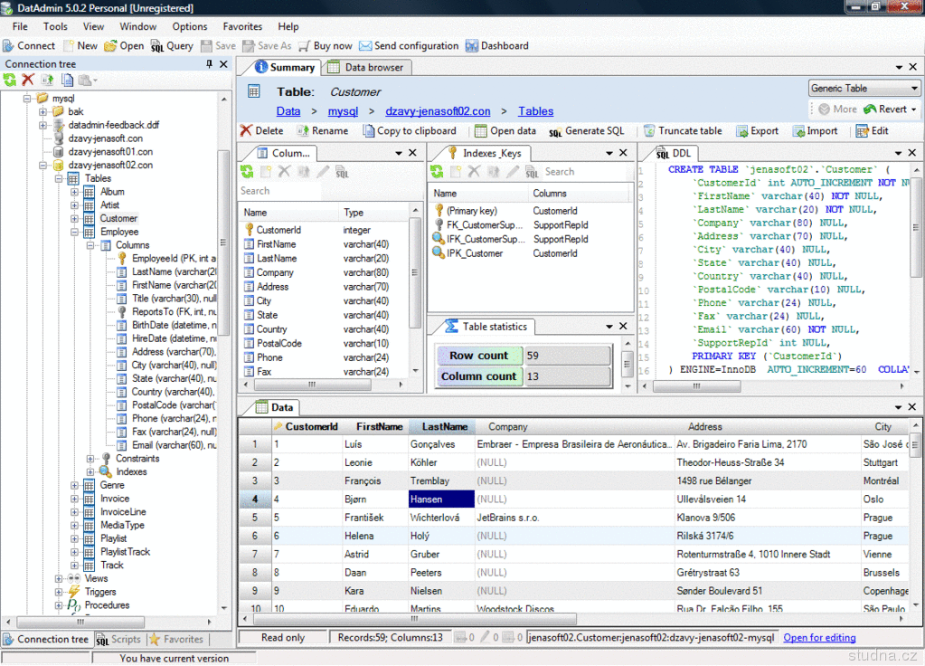 DatAdmin je komfortné a jednoduché grafické databázové rozhranie pre Windows.