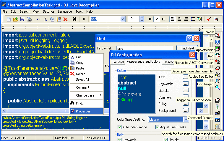 DJ Java Decompiler je decompiler a disassembler komplexných Java appletov a binárnych súborov.