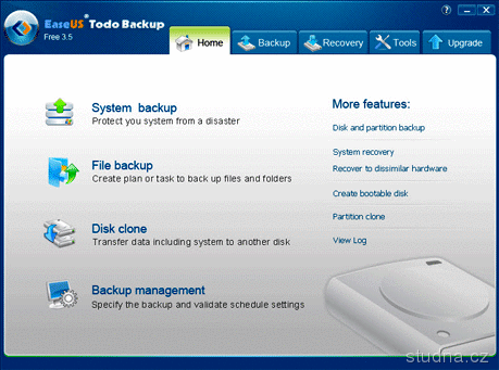 Zálohovací softvér ponúkajúci možnosť ručného alebo automatického zálohovania dôležitých dát na ľubovoľné úložisko pripojené prostredníctvom USB/Firewire alebo v sieti, v komprimovanej podobe alebo formou identickej kópie.