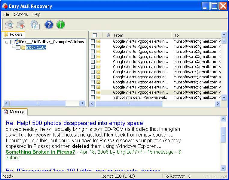 Nástroj na obnovu zmazaných alebo poškodených správ elektronickej pošty a kontaktov z databáz Microsoft Outlook (98, 2002, 2003, 2007 a 2010) a Microsoft Outlook Express.