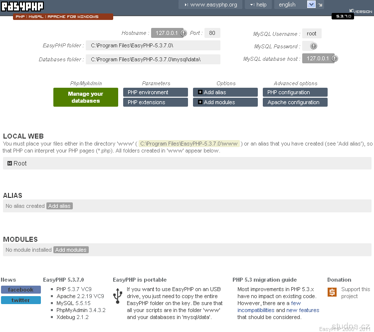 EasyPHP je kompletné vývojové prostredie pre PHP vývojárov.