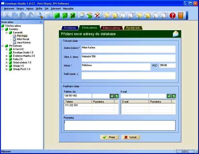 Program umožňuje tlač adries na obálky a samolepiace etikety v profesionálnej kvalite.