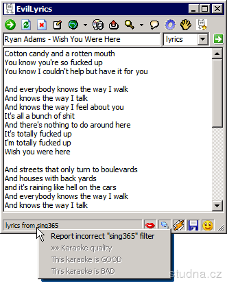 Slovami autora: "Program na automatické vyhľadávanie textov pesničiek práve prehrávaných vo vašom prehrávači.