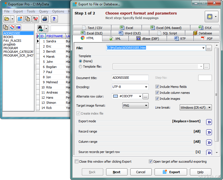 Parametre programu Exportizer Pro 6.0.2