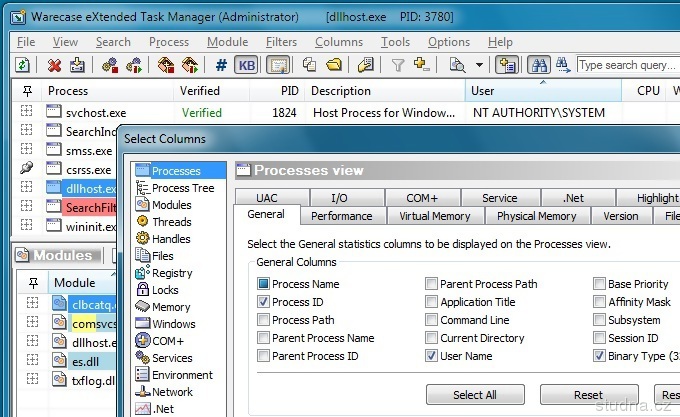 Program zobrazuje zoznam procesov bežiacich vo vašom systéme a zoznam všetkých načítaných modulov alebo modulov využívaných určitými procesmi.