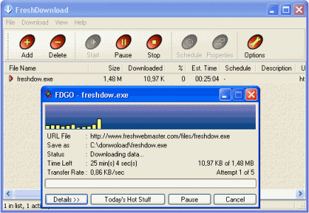 Fresh Download je download manager so schopnosťou urýchliť sťahovanie protokolmi FTP aj HTTP (HTTPS), nadviazať na nedokončený prenos, realizovať súčasne viac pripojení, naplánovať sťahovanie.