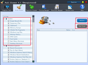 Parametre programu Full Cleaner 6.1