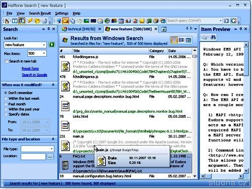 Nástroj rozširujúci možnosti vyhľadávania prostredníctvom aplikácií Google Desktop a Windows Desktop Search.