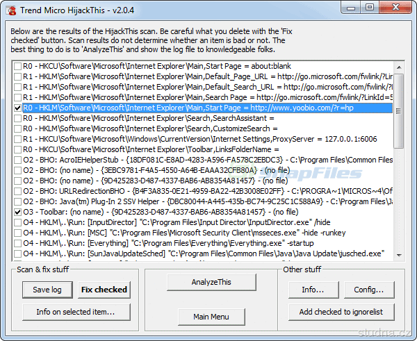 Nástroj pre pokročilých užívateľov, ktorý dokáže z registra získať a zobraziť informácie o inštalovaných doplnkoch internetového prehliadača a programoch spúšťaných automaticky pri štarte systému.