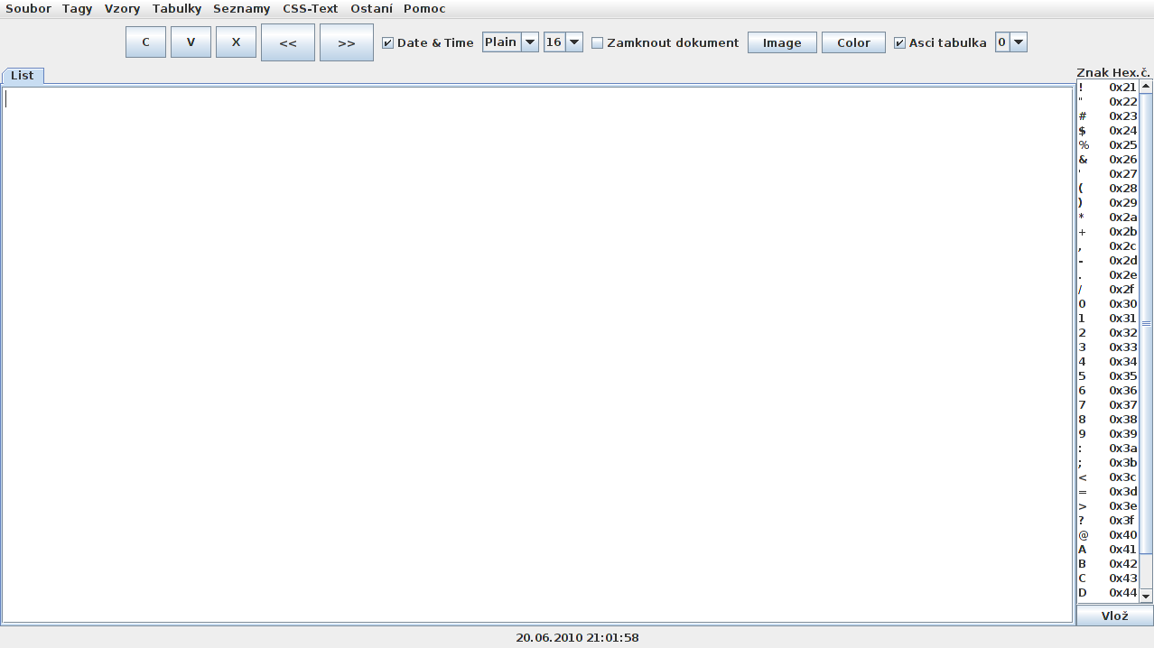 Ide o jednoduchý HTML editor s vkladaním všetkých rôznych tagov, ďalej podporuje ukladanie a otváranie kódu atď.