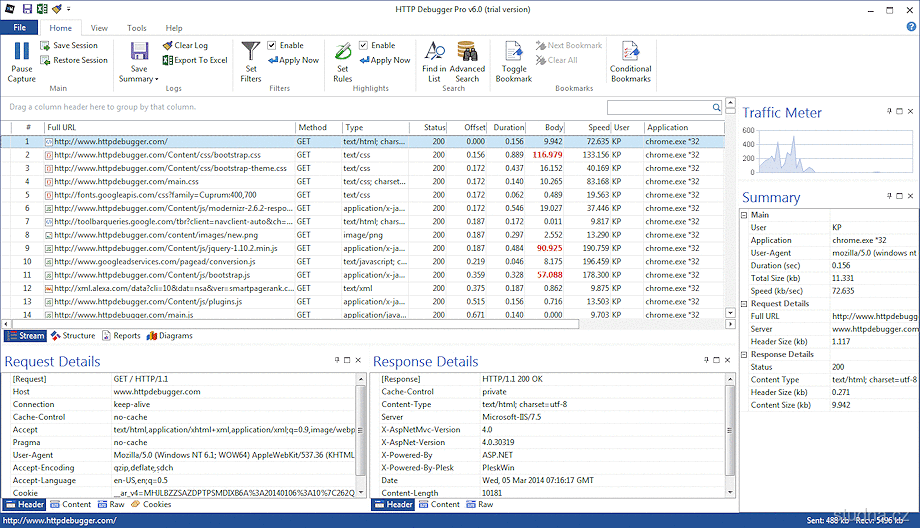 IEInspector HTTP Analyzer umožňuje v reálnom čase monitorovať, trasovať, ladiť a analyzovať HTTP/HTTPS komunikáciu.