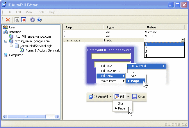 Doplnok pre Internet Explorer umožňujúci jednoduché ukladanie a vypĺňanie webových formulárov.