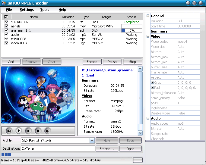 Parametre programu ImTOO MPEG Encoder 5.1.22.0305