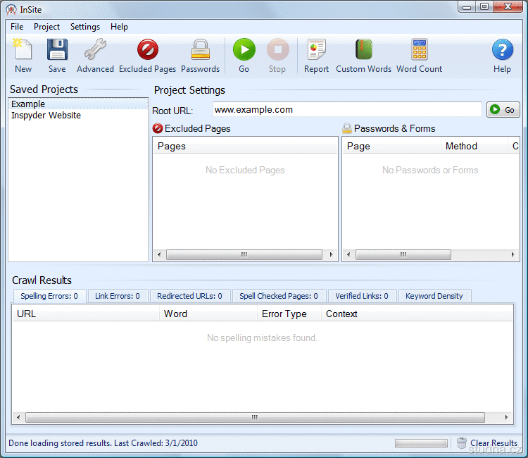 Inspyder InSite umožňuje správcom webových stránok vyhľadať neplatné odkazy, analyzovať početnosť výskytu kľúčových slov a skontrolovať pravopis.