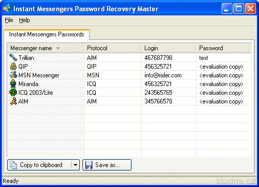 Program umožňujúci obnovu stratených alebo zabudnutých hesiel k účtom v aplikáciách pre online komunikáciu (ICQ, Trillian, Miranda, GAIM, IM2, SIM, MSN Messenger, Yahoo! Messenger, R&Q, AIM, QIP, Odigo, PSI, Paltalk, Google Talk, Excite Private Messenger, Windows Live Messenger).