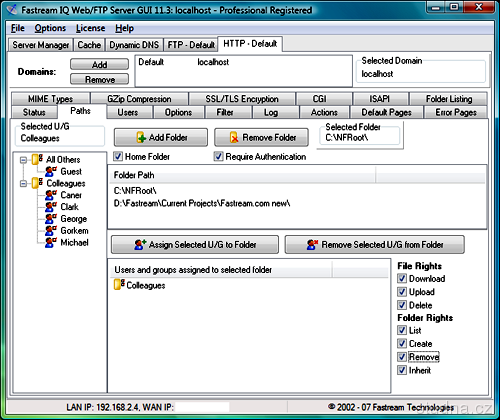 Stabilný, výkonný FTP a Web server ponúkajúci dvojúrovňový GUI systém vzdialenej správy založený na XML, podporu CGI/ISAPI, nastavenie diskových kvót, oddelené obmedzenie rýchlosti prenosu dát pre upload a download, dynamický DNS, kompresiu, šifrovaný 256 bitový HTTPS a FTPS prenos.