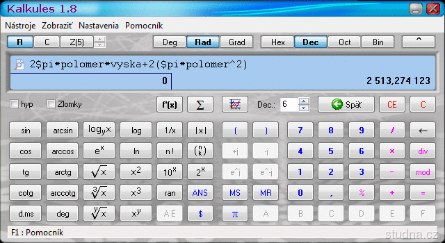 Pri tejto kalkulačke si môžete zvoliť presnosť.