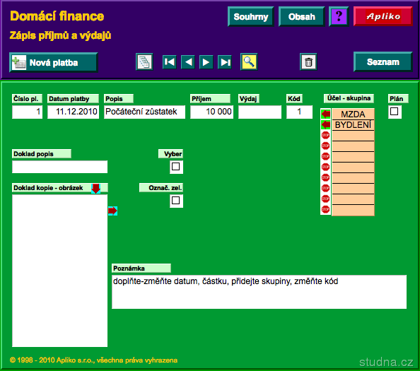 Evidencia hotovosti pre rodinu alebo sledovanie nákladov malej firmy a prevádzky.