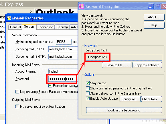 Program umožňuje získať zabudnuté heslá uložené systémom Windows, ktoré sa zobrazujú len ako reťazec hviezdičiek.