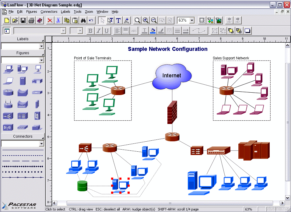 Program umožňuje jednoduchú tvorbu schém počítačových sietí a rôznych komunikačných systémov.