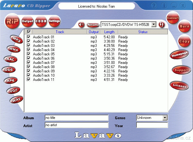 Parametre programu Lavavo CD Ripper 5.0
