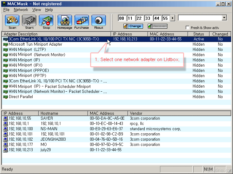 MACMask umožňuje zmeniť alebo maskovať MAC adresu sieťového adaptéra.