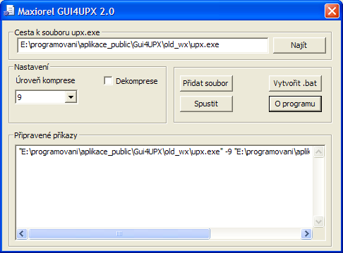Program je určený pre jednoduchšiu manipuláciu s kompresným nástrojom UPX.